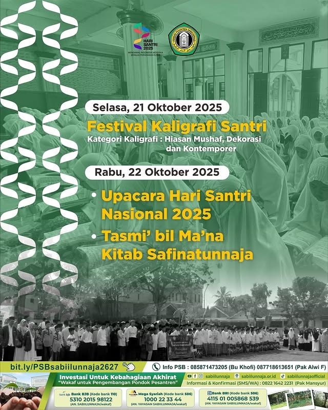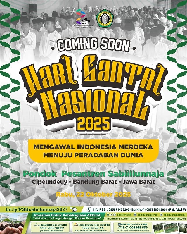 Cipeundeuy, Bandung Barat – Pondok Pesantren Sabiilunnaja tengah bersiap menyambut momentum penting bagi seluruh santri di Indonesia, yakni Hari Santri Nasional 2025. Tahun ini, peringatan Hari Santri mengusung semangat besar: “Mengawal Indonesia Merdeka Menuju Peradaban Dunia.”